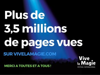 C'est officiel et toute l'équipe du Festival "Vive La Magie" fait un peu sa crâneuse ! En effet, le site web vient de franchir le cap des 3 500 000 de pages vues au 19 avril 2020 ! On est très heureux de vous voir fréquenter si nombre